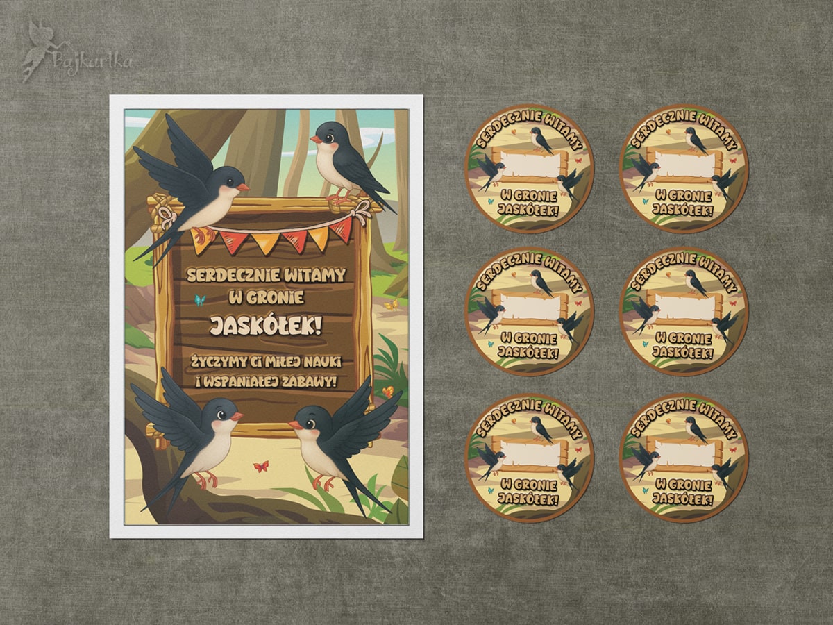 Zestaw powitalny dla Jaskółek zawiera dyplom oraz 6 medali z miejscem na wpisanie imienia.
