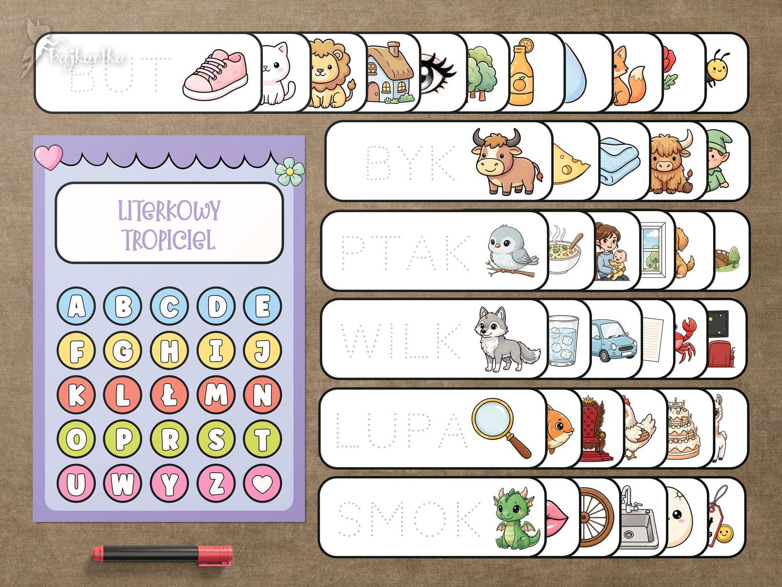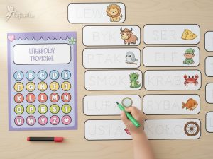 Literkowy tropiciel to wielorazowy zestaw do nauki pisania i czytania, który zamienia naukę alfabetu w interaktywne wyzwanie dla każdego przedszkolaka. Formuła „pisz i zmazuj” daje dziecku pełną wolność w ćwiczeniu rączki i zachęca do niekończących się, samodzielnych powtórek.