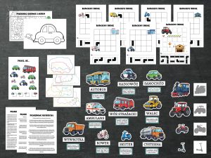 – po podwójnym wydrukowaniu obrazków z pojazdami zagramy w: znajdź 2 takie same pojazdy, znajdź pojazd bez pary, itp.